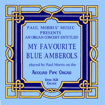 In 1912, the Edison company produced a new format of cylinder record called the "Blue Amberol". These were made until 1929, of blue celluloid, and gave arguably the best acoustic reproduction of any type of record then available. Paul Morris has a collection of these and has spent many an hour arranging the music on them for organ. Paul Morris is gifted with an uncanny ability to reproduce the music and style of the era. He admits to being a frustrated silent movie organist, having been born 100 years to late! This CD was recorded on a 21 rank Aeolian residence organ in Exeter. It is a very different organ CD for many reasons and a far cry from the "Blackpool sound"- it is a tribute to a gentler era when the theatre organ was just starting out. |