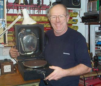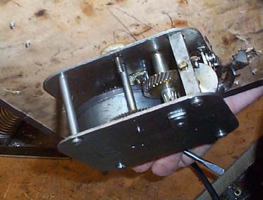 The Motor of a Decca 22 Gramophone (Spring drum on left; governor brake disc on right) |