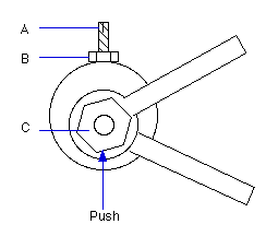 Repeat the process until a satisfactory result is obtained. If the adjustment does not appear to be occurring in a consistent manner, this is either because 'C' was not being pushed firmly against 'A' when it was being tightened or because the adjustment has taken the crank nut above the centre line of the shaft..