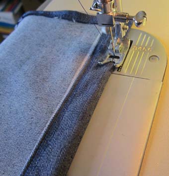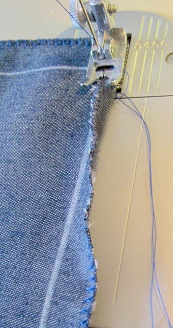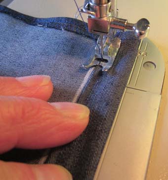 Fold down the top edge until it meets the ckalked mark, then sew the edge down. |