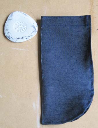 Continue stitching around both curves and back up the other long side. Stretch the material as you sew around the curves, so as to minimise creasing. |