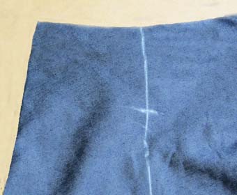 Fold the pocket in half lengthways, Wrong side to wrong side, and mark the centre line with chalk. |