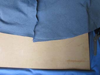 Carefully cut along the chalked line, removing any excess material to give a smooth curve. |