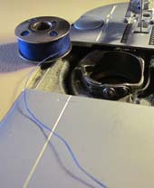 Set the machine for half-width zig-zag and use the needle position control to move the needle fully to the left. Sew a pattern in reverse with fine stitch spacing just to the left of the centre line. |