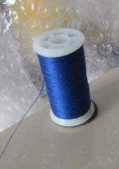 Wrap the spare thread around the bundle of threads which hold the button onto the fabric. Do this many times until a solid 'tail' is formed.