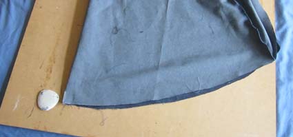 Lay out the skirt panels, right side up, and check that the hemline forms a smooth curve across the joints in the panels. If it does not, chalk a suitable curve on the material. |