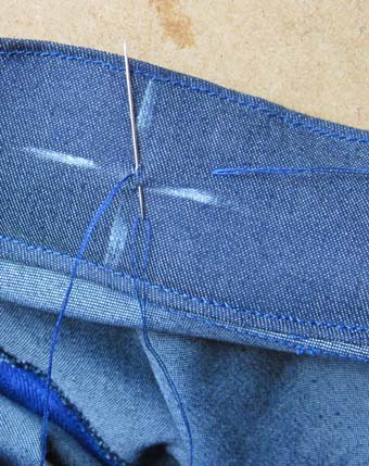 The simple technique shown here is adequate for informal skirts made of denim, a slightly more difficult alternative is shown for more formal skirts in a different material.