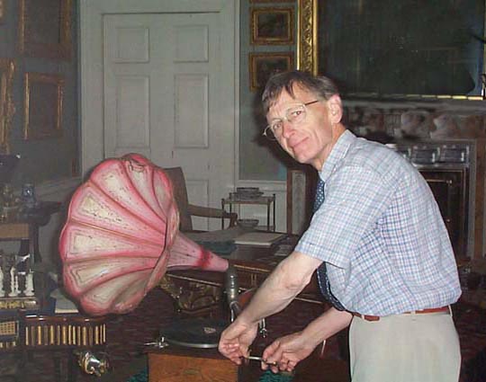 Alastair Murray winding the Harmony gramophone