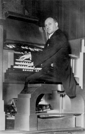Frank Newman at the organ of the Plaza Cinema, Rugby