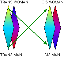 The diagram shows that the traditional classifications are even more irrelevant when the person's gender does not align with their birth sex: