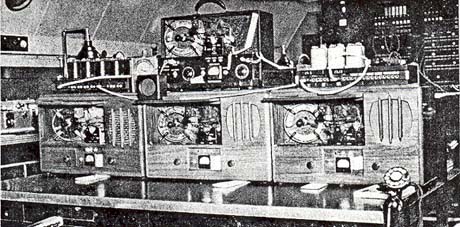 These problems have all been faced squarely in a new instrument manufactured by the Recordgraph Corporation of New York City. Several models of these instruments are now in test operation in the New York and Washington offices of the National Broadcasting Company, where they are used to provide a continuous and permanent record of the programs of the Red and Blue Networks. These machines are of the continuous type, operate eighteen hours per day, require very little supervision and only necessitate a change of film every six hours. A battery of four continuous recorders is shown in photograph number one.